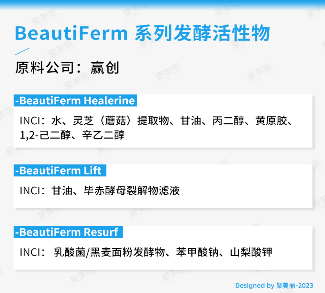 基于对发酵护肤的市场洞察,赢创推出的BeautiFerm 系列发酵活性物,包含了三种天然成分:BeautiFerm Healerine、BeautiFerm Lift和BeautiFerm Resurf 。