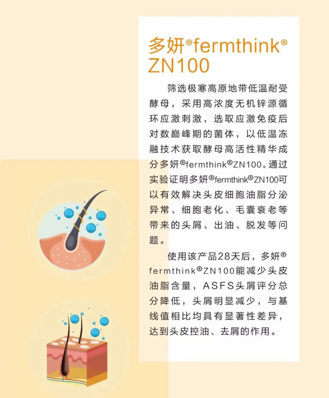 通过实验证明,多妍 fermthink ZN1可以有效解决头皮细胞油脂分泌异常、细胞老化、毛囊衰老等带来的头屑、出油、脱发等问题。