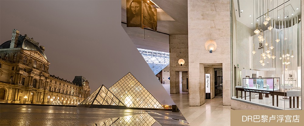 DR真爱体验店的设计充满巧思。以DR钻戒位于法国塞纳河北岸的巴黎卢浮宫店为例,其内部整体采用浅色素白大理石装修风格,以水晶吊灯、旋转楼梯等装饰元素,诠释了古典的法式浪漫。