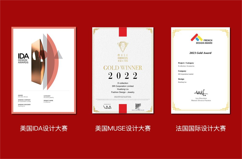 事实证明,做正确的事总有回报。2022年,DR钻戒凭借D系列作品,斩获了有“设计界奥斯卡”之称的美国MUSE设计大赛、法国国际设计大赛和美国IDA设计大赛三大国际权威大奖,“相当于是拿到了国际珠宝行业的大满贯,”Wendy说。