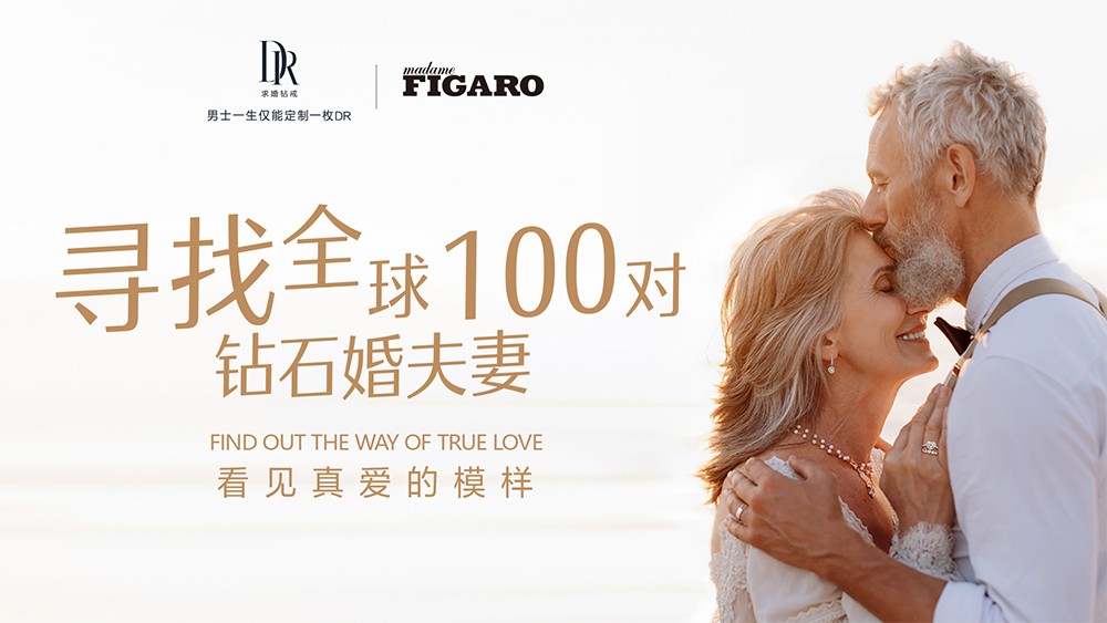 2023年元旦,DR钻戒在中国老龄事业发展基金会的支持下,联合法国时尚杂志《费加罗FIGARO》面向全球发起“寻找全球100对钻石婚夫妻”的真爱公益行动,为他们献上专属定制的100对DR真爱对戒。