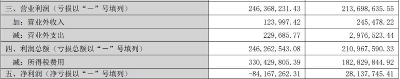 值得一提的是,在合并报表中,上半年顺鑫农业的营业利润、利润总额两项指标均为正数,且和上年同期相比是增长的,但考虑所得税费用影响之后,净利润出现了负值。其中,上半年所税费用达3.30亿元,和上年同期的1.83亿元相比有大幅上升。