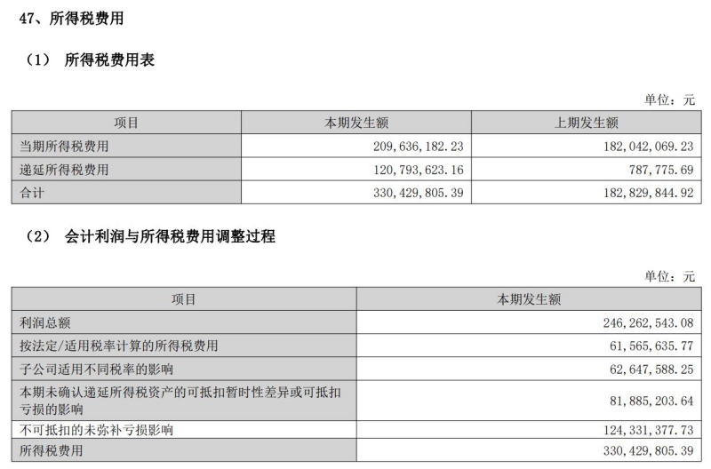 在所得税费用中,“递延所得税费用”高达1.21亿元,而上期只有78.78万元,在利润总额为2.46亿元的情况下,这对净利润的影响是很大的。会计利润与所得税费用的调整过程显示,“不可抵扣的未弥补亏损影响”金额为1.24亿元。