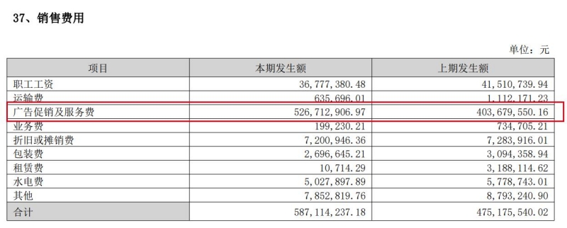 另一个值得注意的财务指标是销售费用。虽然顺鑫农业上半年营业收入同比下滑,但是销售费用5.87亿元却有明显的增长,和上年同期相比增长了1.12亿元,增幅23.58%。主要就是“广告促销及服务费”出现了1.23亿元的增长,除此之外,销售费用其他各明细项目均为同比减少。