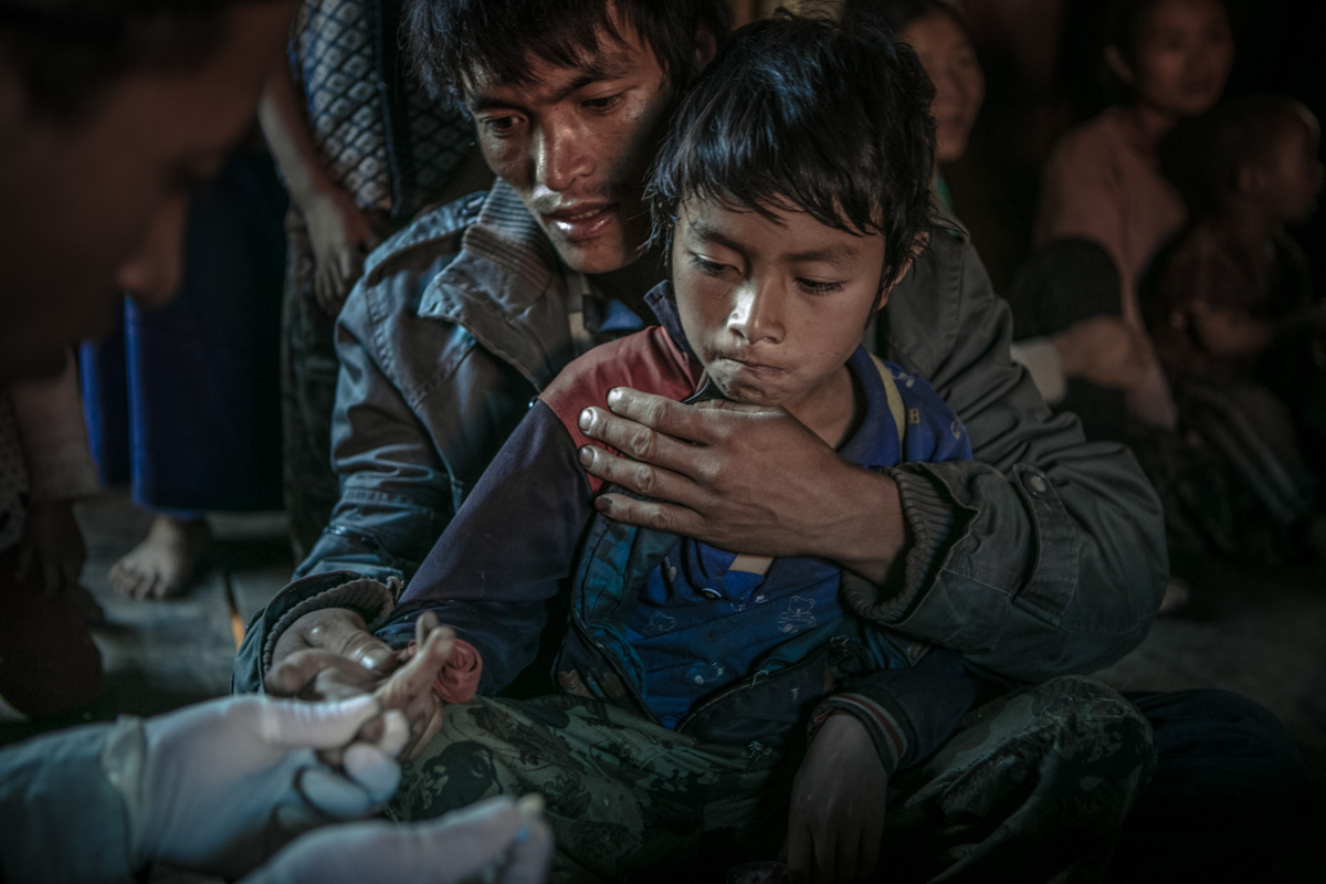 2015年11月,在联合国儿童基金会英国海外发展署的支持下,我进入缅甸克钦邦,为英国无国界卫生组织(Health Property Action,简称HPA)拍摄这组照片,记录了HPA作为一个国际医疗援助组织在当地开展的工作,以及那里居民的生活现状。三年前,我曾经为HPA在缅北的佤邦和SR4(缅甸掸邦第四特区)进行了拍摄,这两个缅北特区连同克钦邦和果敢,在百度地图上几乎是一片空白,但这个地区过去有个人人都知道的称呼:“金三角”。