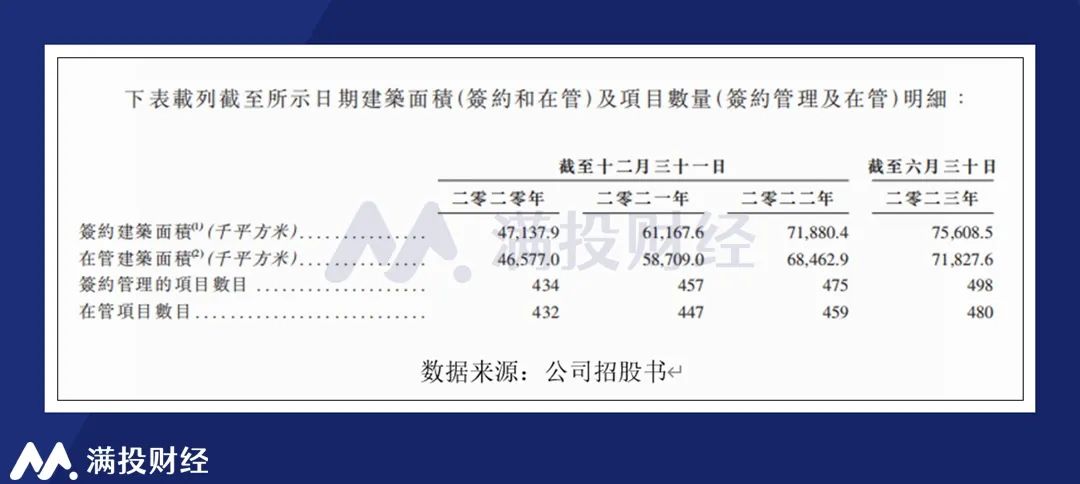 深业物业2020年至2022年的综合收入为18.38亿元、21.52亿元及23.48亿元,呈增长趋势;2023年上半年收入达到12.84亿元,相较于2022年同期增长16.42%。据招股书披露,这与签约建筑面积和在管建筑面积的双增息息相关。