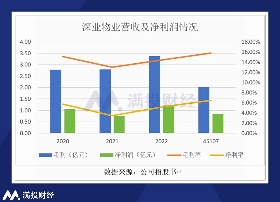 盈利方面,2020年至2023年6月30日,深业物业的经营利润为1.45亿元、1.02亿元、1.41亿元及1亿元;同期的净利润为1.05亿元、0.75亿元、1.21亿元万元及0.83亿元,其中2023年上半年实现同比增长37.5%,年复合增长率为7.32%。