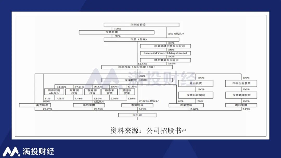 从股东结构来看,深圳物业在上市前国资委通过全资子公司深业(集团)持股63.19%的深圳控股(00604.HK)进行间接控制,其中南方地产持股49.47%、泰然集团持股29.55%、泰然物流持股13.6%、深业置业持股13.6%、农科集团持股3.19%。公司背靠国资委,有着雄厚的国企背景,对于未来发展规划有一定的好处。