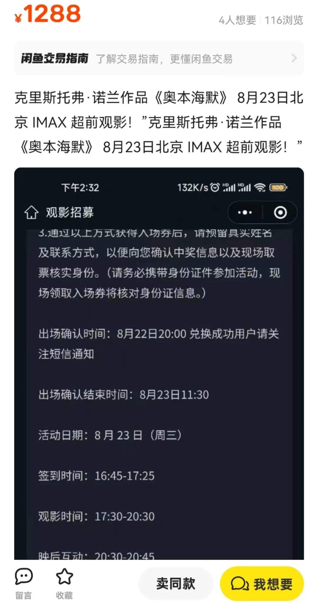 诺兰还亲自出席了《奥本海默》的宣传活动。这是疫情后首次有好莱坞导演来到中国进行宣传(受好莱坞罢工事件影响,杰森·斯坦斯缺席《巨齿鲨2》在华的路演)。为一睹这位大导演的真容,影迷们纷纷哄抢《奥本海默》首映礼的门票,首映礼门票甚至被炒到了上千块的价格,堪比国内不少人气歌手演唱会。