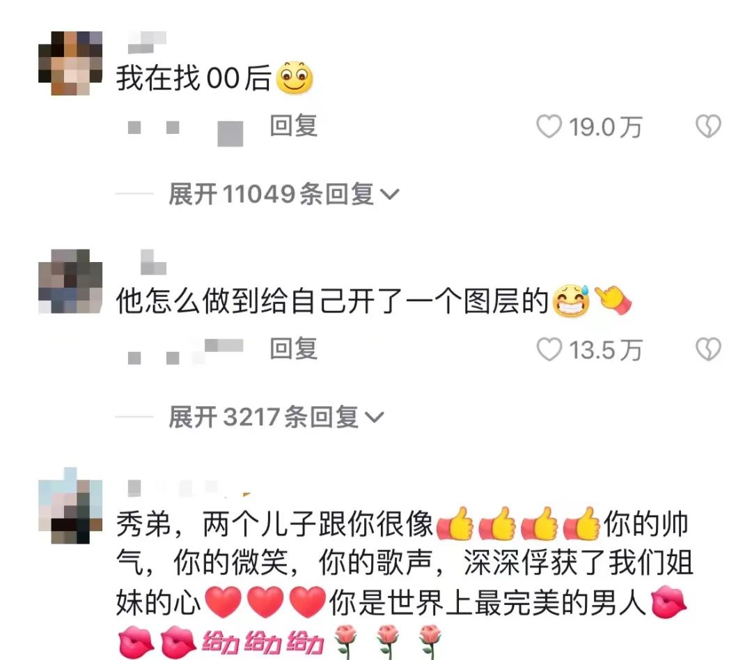 她们最开始喊他帅哥,一个“笑起来真迷人”“不让老婆省心”的帅哥。有人说“很欣赏你唱歌那么深情的表情”,还有一位ID里有“奶奶”的用户,写下带着错别字的留言:“这是个年轻又帅气的小伙子,那(哪)个不愿意跟合拍,只是年己(纪)太大的不合适。”