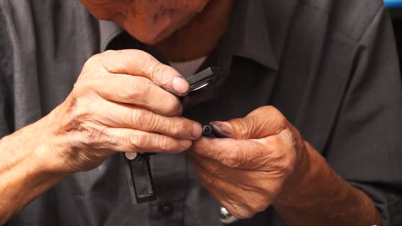 老爷子从17岁便开始在哥哥的钢笔店当学徒。几十年来,经这双沾满墨水的手修好的钢笔,从几块钱的“老英雄”,到上万块的“万宝龙”,差不多已有60多万支。有顾客祖孙三代都找过他修笔,“爷爷来修了,孙子也来修。”