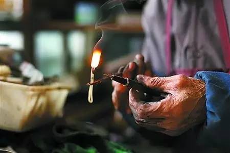 来修笔的,有当地人,也有外地人,有些甚至是外国人。人们说这位老人,有一双巧手,就算变了形的笔尖,经他一拨弄,水通了,笔就润了。