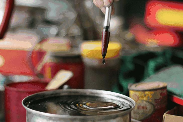 上海古旧的东新民路上,有一家不起眼的小店,红底白字的招牌上写着“天顺古笔买卖修理”。每天上午9点,这里准时开门。83岁的施天水,穿上深褐色的工作围裙,戴上墨迹斑斑的袖套,缓步走进这个不足6平米的店铺里,静静等待前来修笔的人。