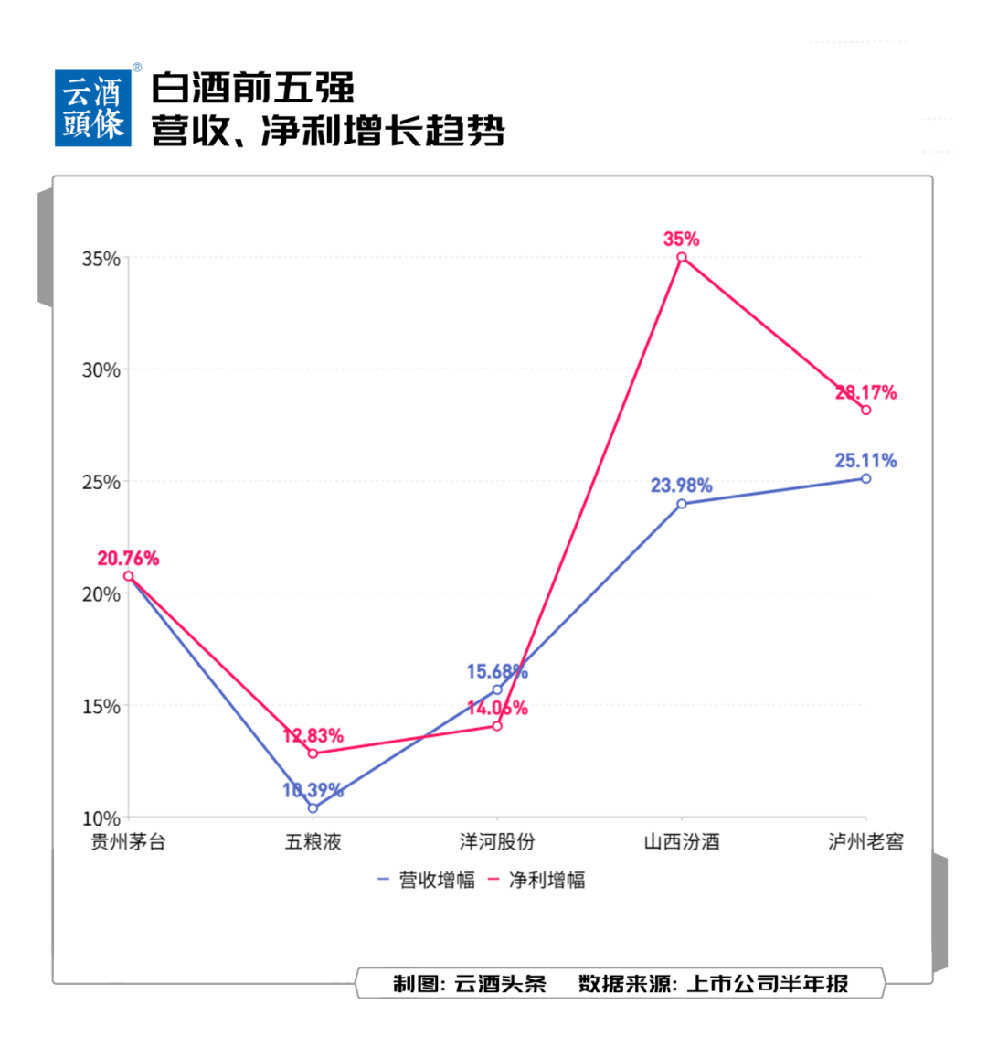 整体而言,白酒前五强企业在2023上半年营收、利润均实现两位数高增长。