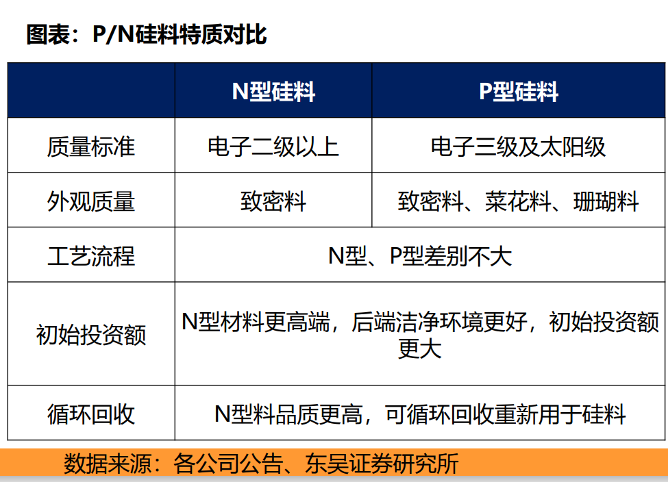 业内人士介绍,头部企业通威、大全、特变电工(新特能源)目前都熟练掌握N型料的生产技术。
