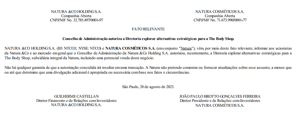 8月28日,Natura&Co在其证券备案文件中宣布,“已授权管理层探索美体小铺的战略替代方案”,并强调“其中可能包括出售该业务”。不过,Natura&Co在一份文件中也表示,“不能保证这一过程会产生任何交易,除非事实和情况发生变化,需要进行进一步披露”。