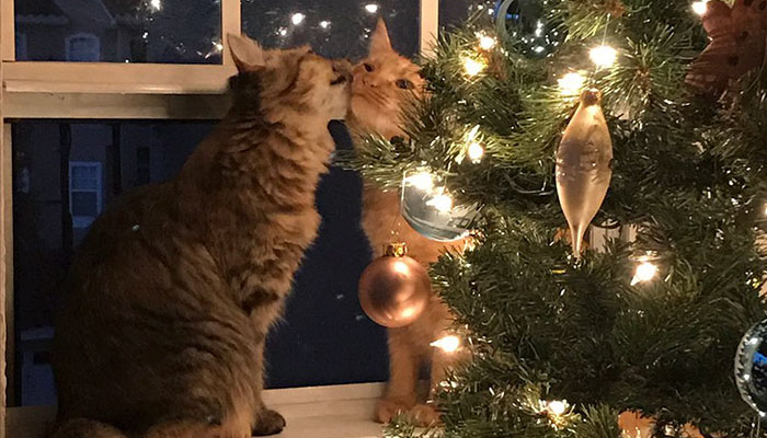 Louie和Luna是两只小猫,一张它俩在圣诞树前亲吻的照片最近在网上火了。没错,空气中满满都是恋爱的酸臭味,多谢这对猫情侣,我们又领略了一次圣诞精神的精髓。