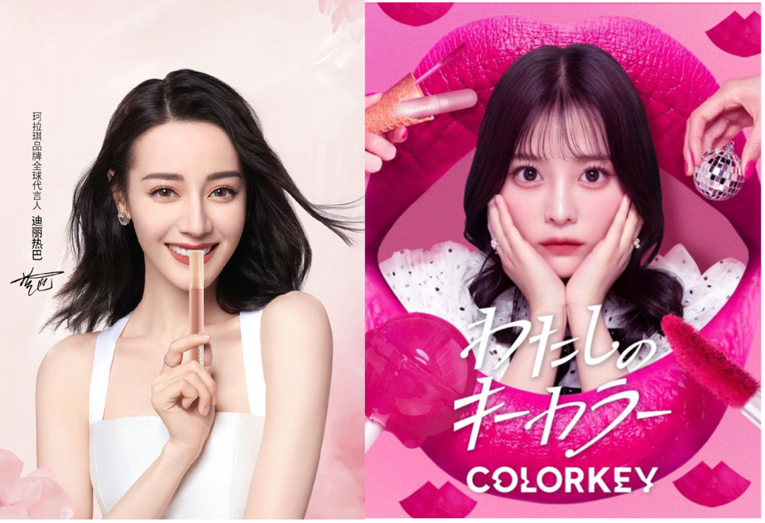 图片说明:左图为colorkey全球代言人迪丽热巴,右图为日本市场形象代言人齐藤渚