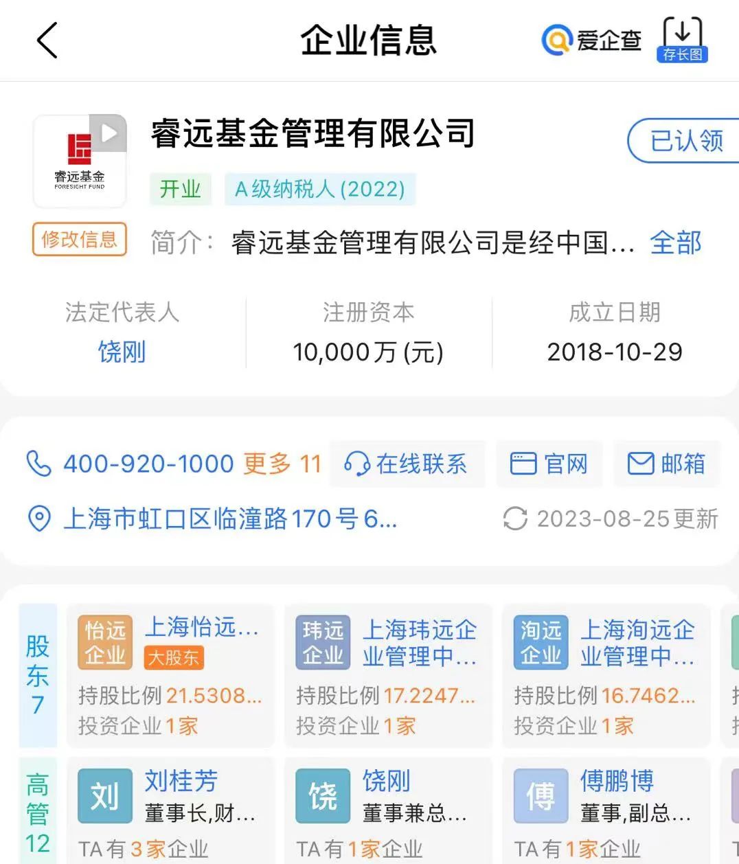 2022年11月睿远基金又增加了新员工入股,包括该公司总经理饶刚、投资经理陈烨远、以及刘都、陈术子、周睿洋、杨维舟、秦伟、董春峰等研究人员。