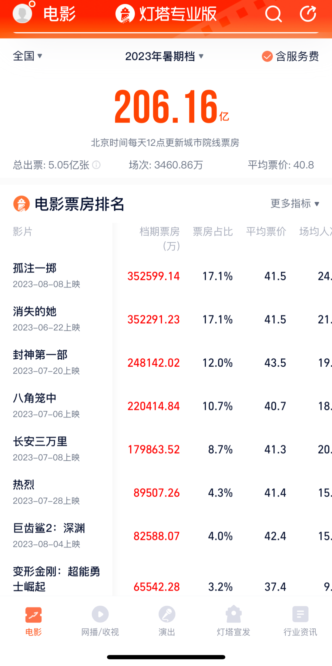 但战况和结局,林远都没有料到——电影行业迎来史上最强暑期档,几部影片都超预期发挥,狠狠拉动了票房大盘,总票房超过206亿,创了影史新纪录。