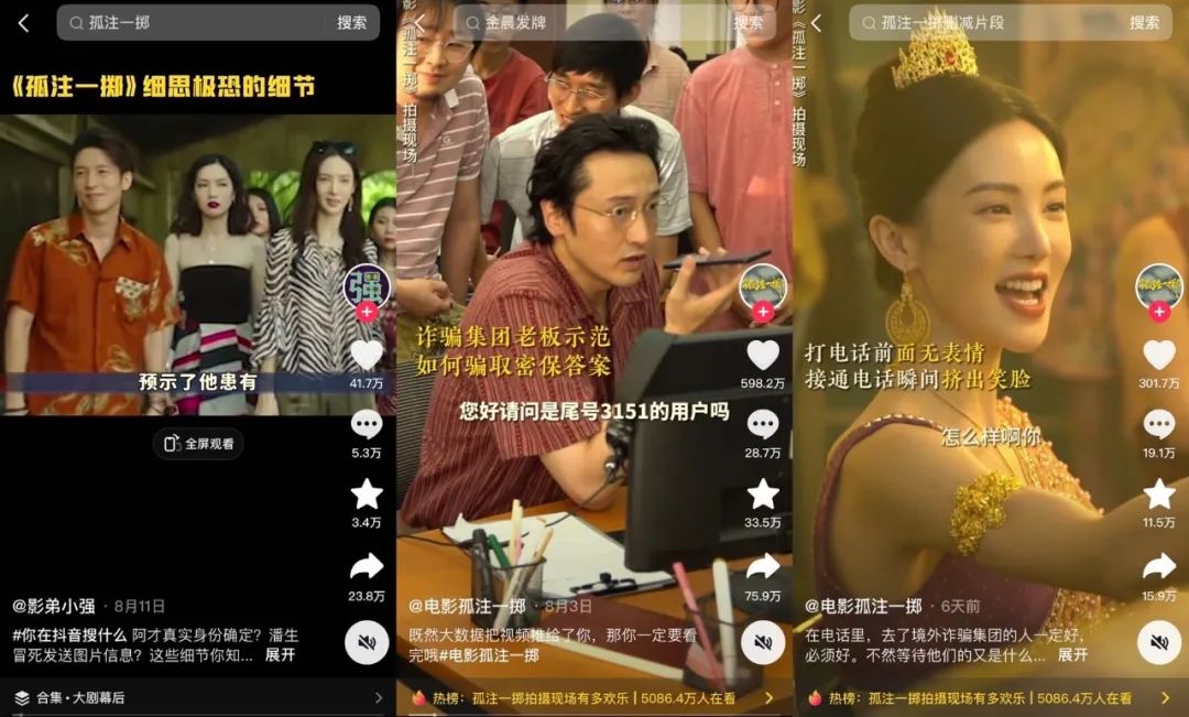▲ 《孤注一掷》的切片视频配合解说,能达到单条500万赞。图 / 抖音