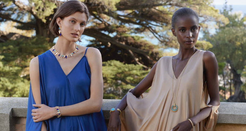 “海浪”(Wave)主题推出项链、手链和耳坠3件单品,涌动的海浪化作蜿蜒的黄金线条,交替镶嵌的半宝石切片描绘浪花的渐变色彩。黄K金与璀璨钻石衬托着青金石和白色珍珠母贝的绚烂虹彩,洋溢着假日气息。