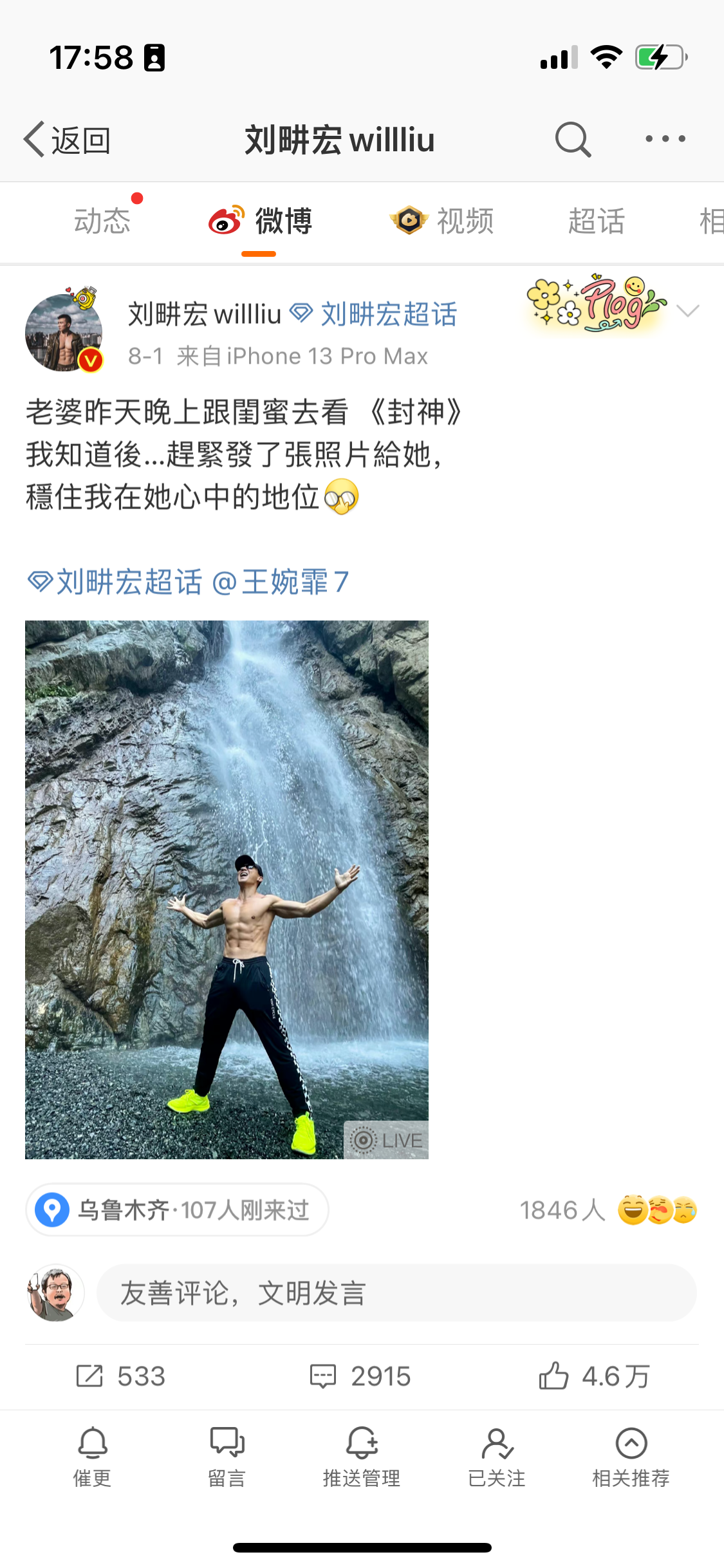 「刘畊宏给看完封神的老婆发的照片」、「刘畊宏教徐志胜跳蛇舞」、「刘畊宏去了鹿晗的演唱会」……如果说去年爆火之初,人们对刘畊宏的关注集中在「直播」和「健身」,那么如今的热度则更偏向刘畊宏本人,及「刘畊宏」这一IP上。