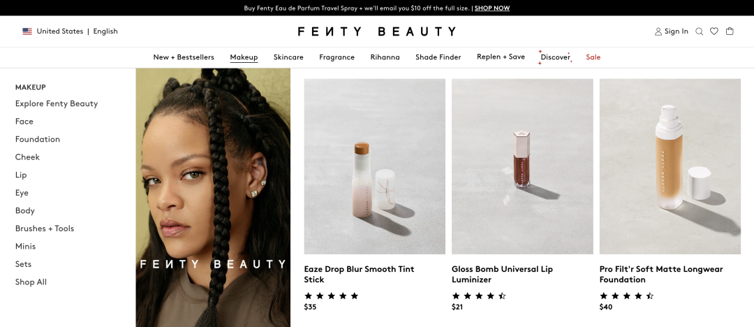 例如美国知名歌手Rihanna创立的Fenty Beauty,是美妆行业最有影响力的黑人品牌。Fenty Beauty在宣传上格外侧重建立“黑人创立”的品牌认同,在产品上为了适应各个肤色的人群,其主线产品ProFilt'r粉底推出时有40种色调,后续逐渐扩大到50多种。