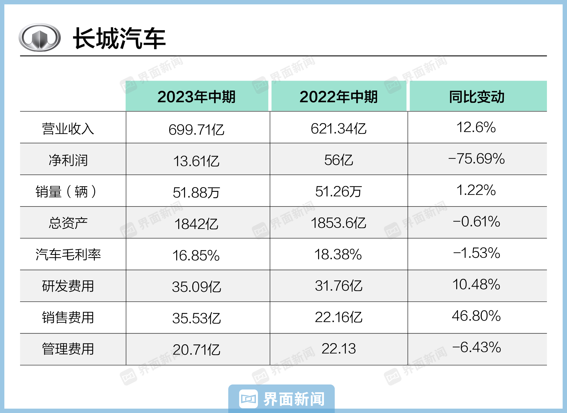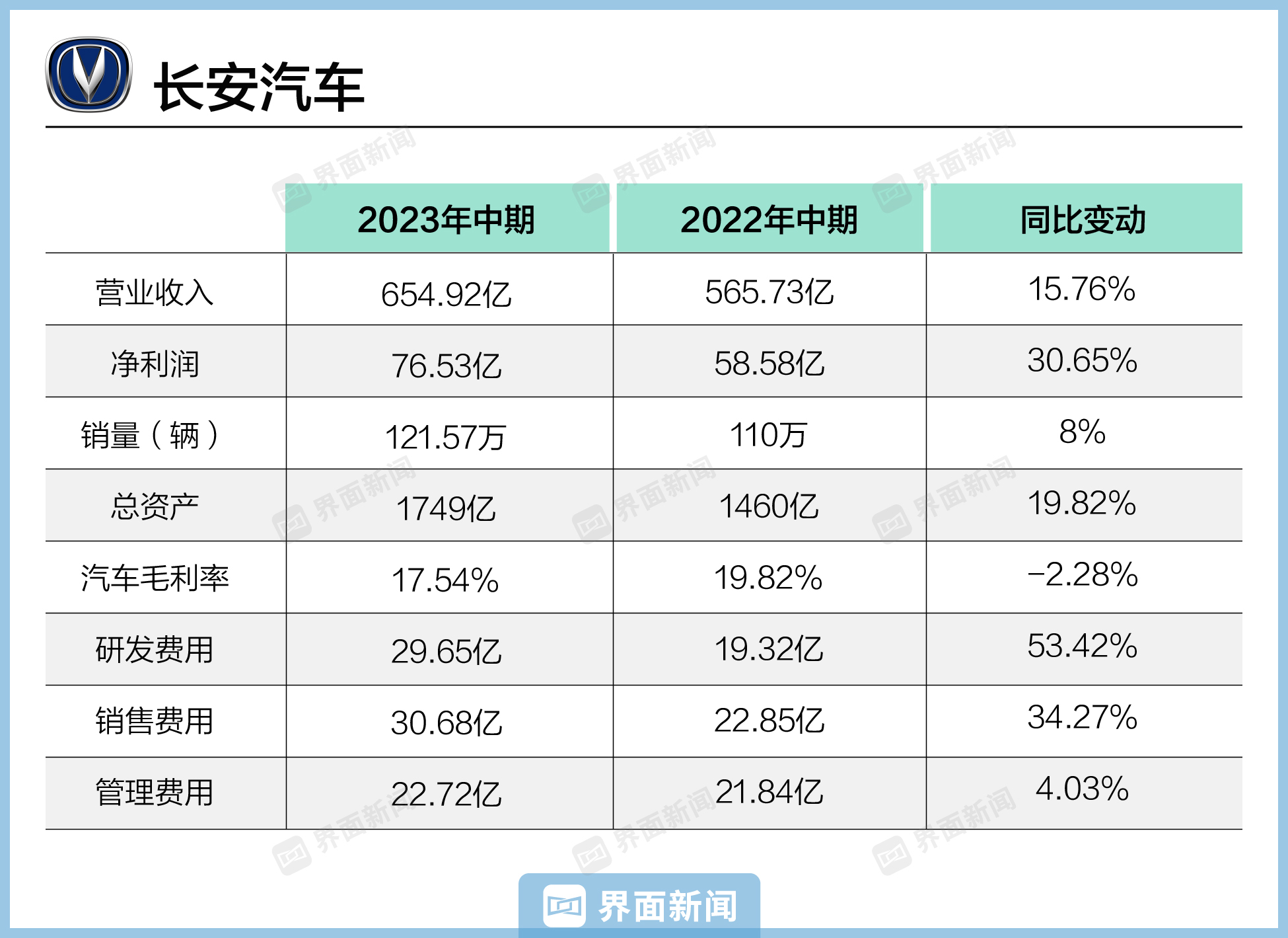 长安汽车上半年净利润仅次于比亚迪,这主要是因为长安汽车对深蓝汽车并购完成,对整体运营有重大影响,销售费用、研发费用等支出均有所增加。