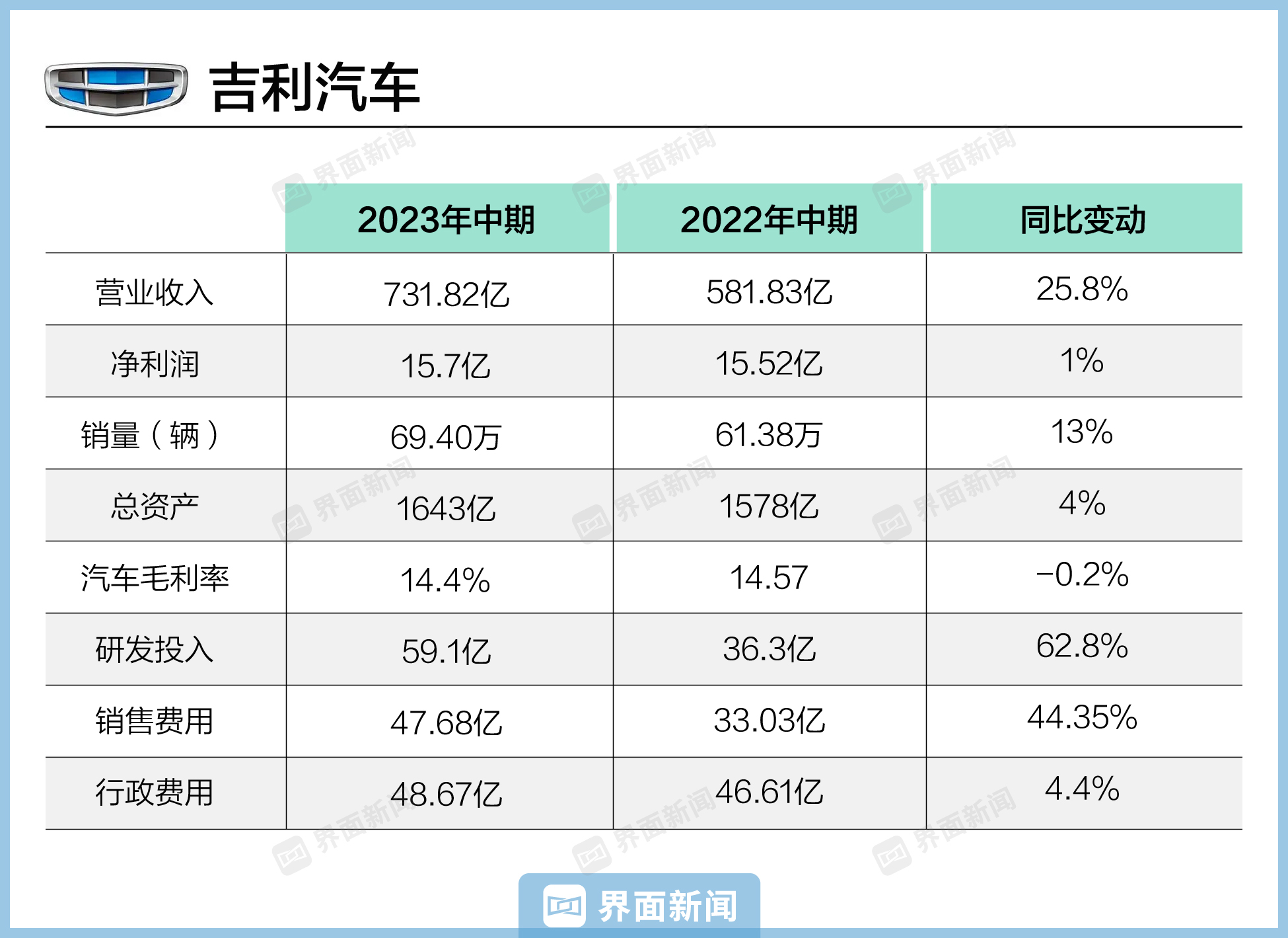 对于业绩变化,吉利汽车表示,2023年上半年销售表现基本符合管理层预期,净利润相比同期基本持平。尽管期内的需求复苏不如预期强劲,加上汽车行业的降价竞争潮,上半年公司完成的总销量仍同比增长13%。