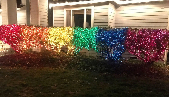 当Lexi Magnusson的邻居发表了一番反对LGBT群体的言论后,Lexi决定用实际行动来表达自己的不赞成。“我们的新邻居是一群固执狂,而既然打人会被起诉,我只好采取更迂回的办法,点亮10000个彩虹灯似乎不错。”她在这张照片下面留言道。