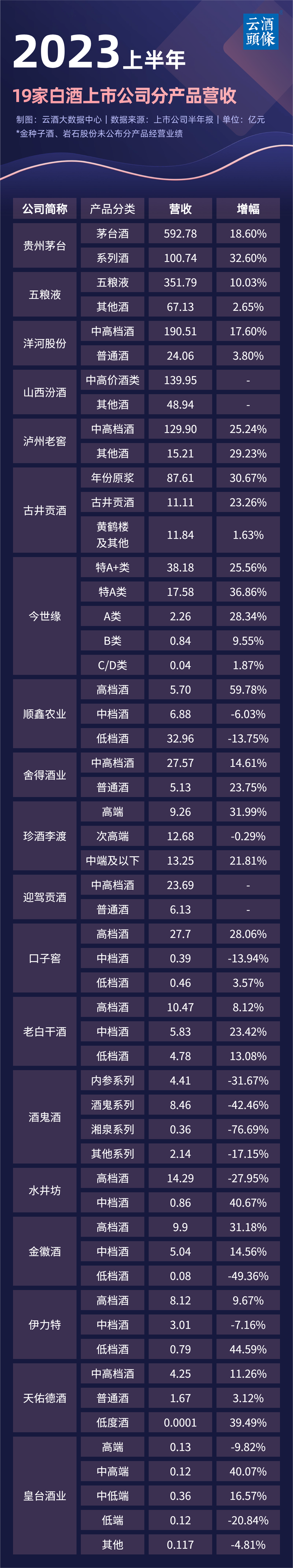 此外,如舍得酒业、珍酒李渡、老白干酒、水井坊等上市酒企的中低档产品表现,同样值得一看。
