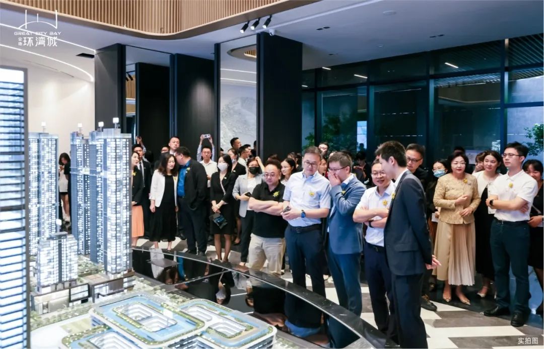 开放当日,不少客户、媒体嘉宾纷至沓来,参观咨询,营销中心高朋满座,在销售人员的热情讲解下,沙盘区、展示区前人声鼎沸,共同见证金地环湾城的高光时刻。