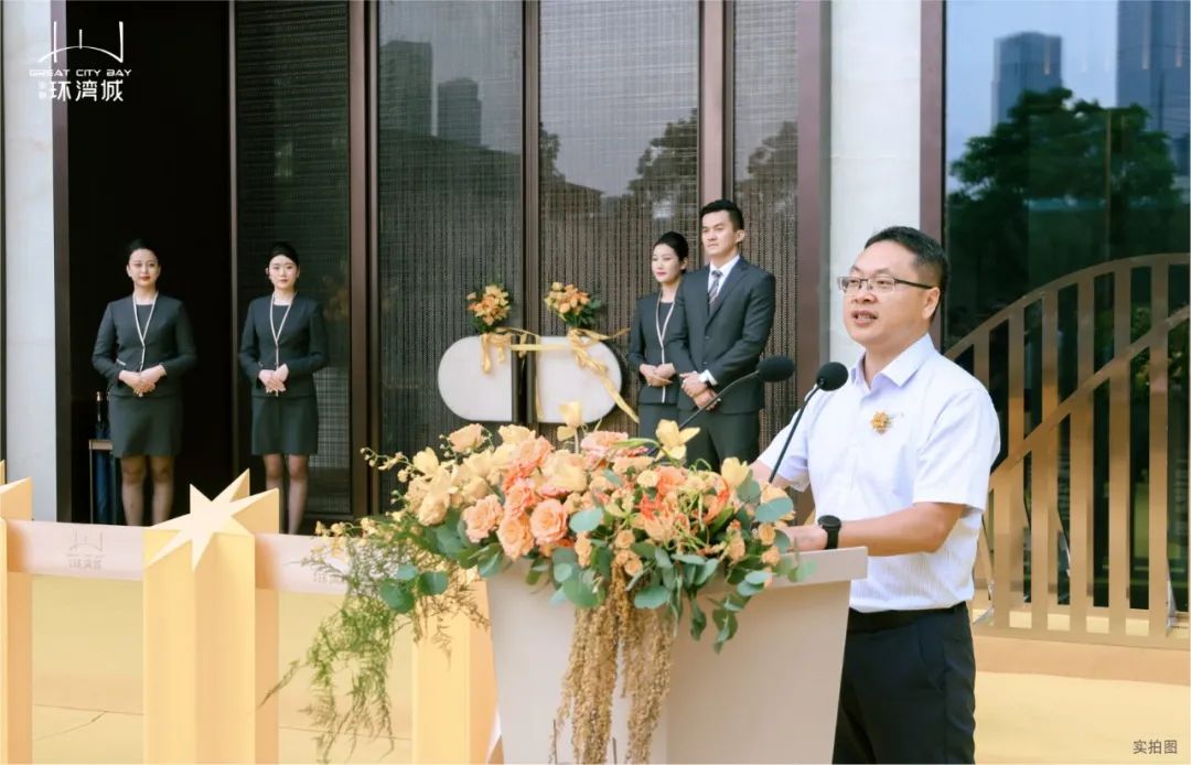 本次开放仪式中,特邀深圳金地新沙公司总经理王晓华,从品牌发展愿景、改善城市使命出发,诚挚表达金地集团将秉持"智美精工,健康生活"的产品理念,携手福田建设,以精工品质匠心精神,建造集团迄今为止最高端的产品。乘风破浪潮头立,扬帆起航正当时,营销中心的开放,寓意金地环湾城这座“福田中心超百万平大城”正式启航。不出环湾,尽享一城,相信金地环湾城必将成为全市乃至全国大城生活的典范!