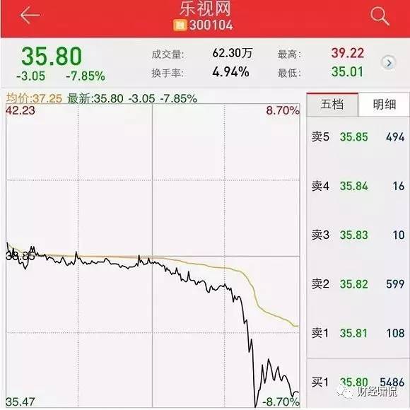 12月6日,乐视网股价跌幅达7.85%,以35.80元/股报收,创年内新低,盘中几乎触及跌停。