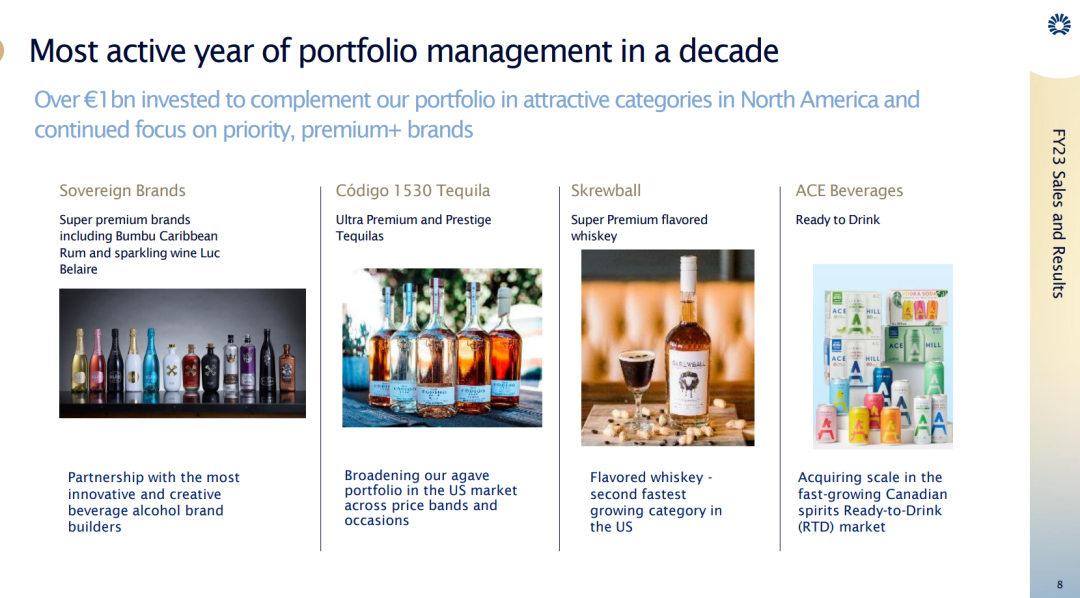 值得注意的是,2023财年,保乐力加就多次“出手”,在收购上十分活跃。
