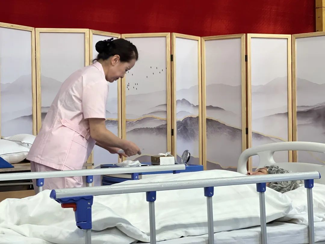 市东敬老院的选手朱素明从业多年,对各类“考点”应对自如。她说,日常工作就如比赛,突发情况几乎天天都有。“要想做到随机应变,还得平时下功夫。遇到卧床老人,我们都会多加护理,比如经常帮他按摩,放松一下肌肉,或是多关注他的面部微表情、体温变化等,让他尽量保持一个良好的身体和精神状态。”