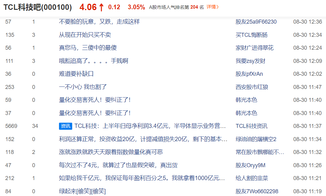 王兆江则认为,近一年来 TCL科技股价表现低迷,主要由于家电竞争相对激烈,且房地产投资短期走弱,另外疫情对居民消费力有所压制,因此机构对它的行业增长预期有限,从而影响了股价。目前TCL科技股价已处于低估阶段。因为显示面板行业有周期性,且随面板技术革新还会带来新的消费增量。