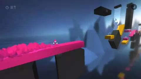 《极速变色龙》是一款跑酷游戏,近景的强化、远景的虚化上做得比较细致,角色加速时的空气波动、落地时散落的方块和跑动时脚下的烟尘等都设计的非常用心。主角在奔跑的时候必须根据不同颜色的路道来切换自身的颜色,与之适应方能存活,否则就将死亡。