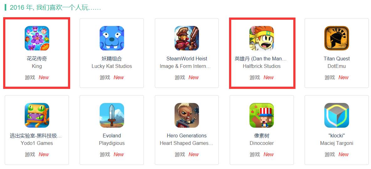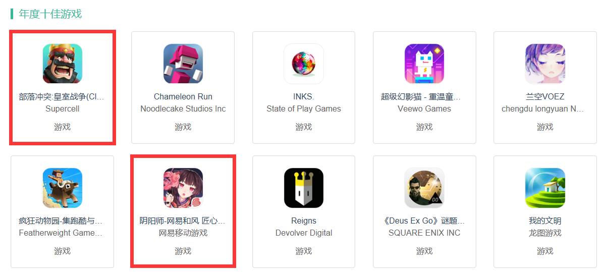 近日,AppStore出炉了中国区2016年度游戏,分别有年度游戏、单机游戏、对战游戏、音乐节奏游戏、体育竞技游戏和独立游戏等六大游戏。其中Supercell《皇室战争》拿下年度最佳游戏,网易《阴阳师》、厦门Veewo《超级幻影猫》、台湾雷亚游戏《兰空》和龙图游戏发行的《我的文明》均进入了年度十佳游戏榜单;而“也爱和小伙伴一起玩(对战游戏)”中则《王者荣耀》排在首位,“为今年的独立制作喝彩……”中仅有三款独立游戏入围。