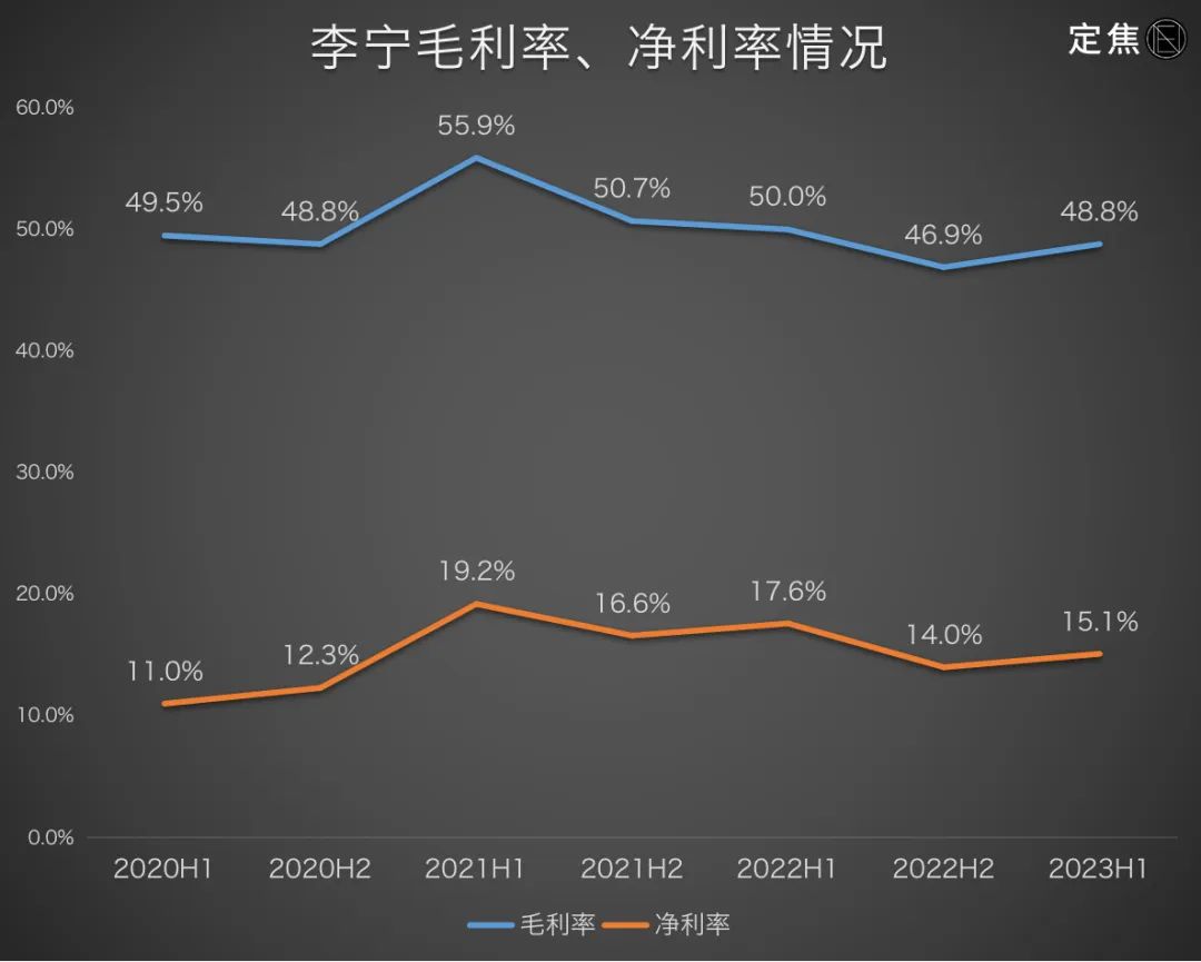 增收不增利,李宁表现得最为明显,毛利率和净利率都处在2021年以来的低点。