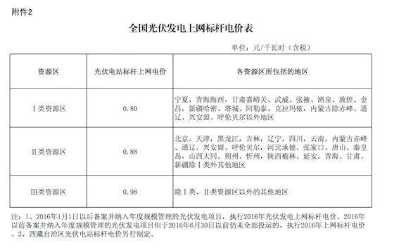 该文件显示,2017年光伏上网标杆电价已确定为一类资源区0.6元/KWh、二类资源区0.7元/KWh、三类资源区0.8元/KWh,目前正在走会签流程,将于不久后正式下发。发改委相关负责人向界面新闻记者回应称,以正式文件出台为准。
