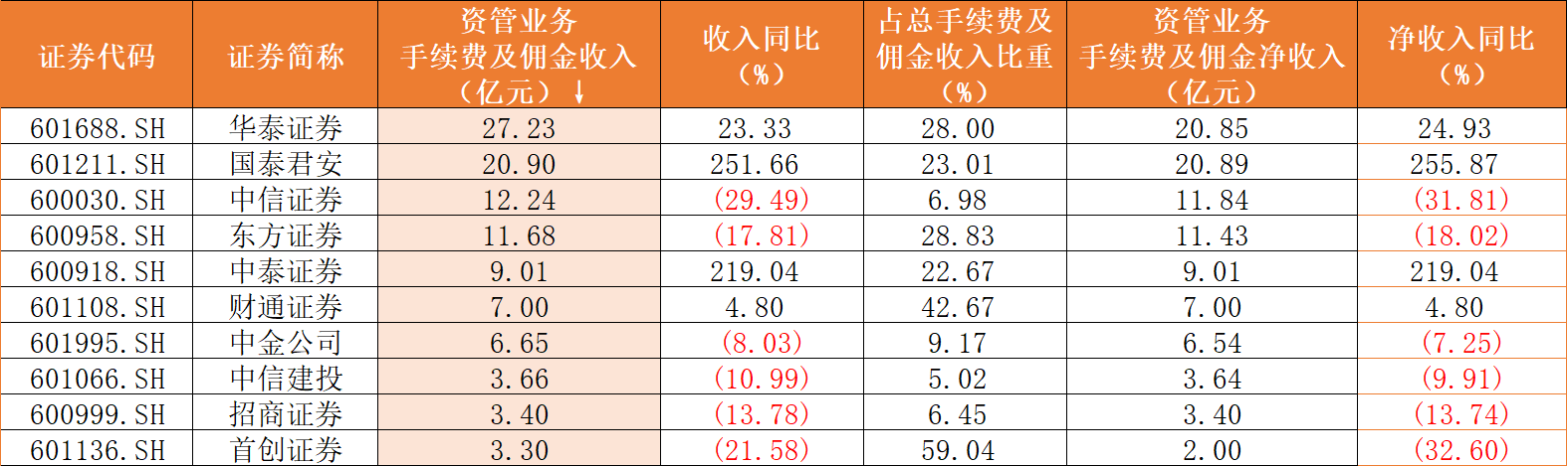 2023年上半年,华泰证券和国泰君安证券分别实现资管手续费及佣金收入27.23亿元和20.90亿元,同比分别增长23.33%和251.66%。