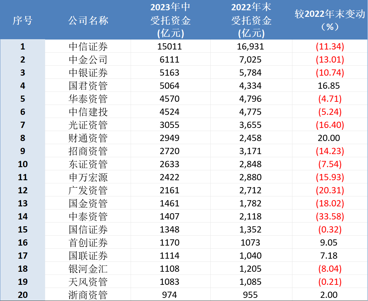 前20强机构中,仅国君资管、财通资管、首创证券、国联证券和浙商资管的受托管理资金规模较期初实现增长。而中泰资管甚至出现规模下降了33.58%。