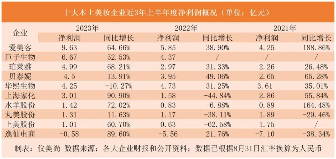 上半年,10大本土美妆企业总共净赚36.21亿元,相较于去年的20.52亿元,大增76.46%。