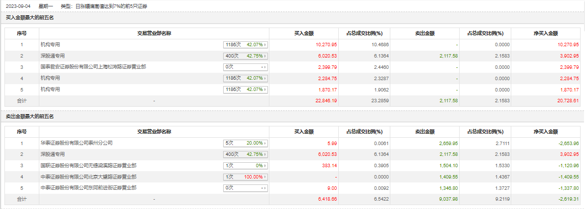 9月4日,鲁西化工今日涨停,成交额9.81亿元,换手率5.80%,盘后龙虎榜数据显示,深股通专用席位买入6020.53万元并卖出2117.58万元,三机构净买入1.44亿元。