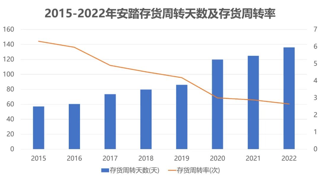 2015-2022年安踏存货周转天数及存货周转率,连线Insight根据公司财报整理