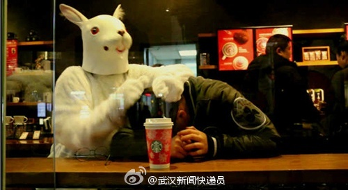 今天下午,@武汉华夏理工学院 广告学专业4名学生装扮成“长耳兔子”乘地铁、亮相闹市街头,活动是想让人们“拔毛体会到兔子在被活体拔毛时的剧痛,从而自觉拒绝动物皮毛制品。不少人对在被拔扯头发后十分生气。同学们细心解释后,大多数人选择了理解和原谅。