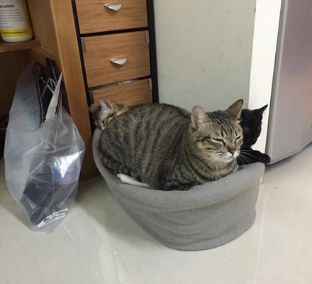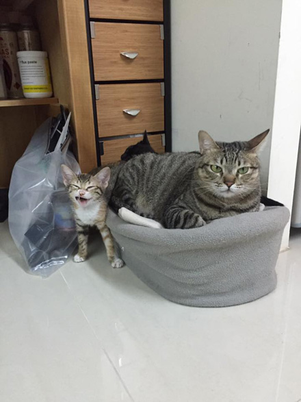 主人给家里的小猫买了个窝,结果被两只大猫看到了……然后就发生了这样的事情: