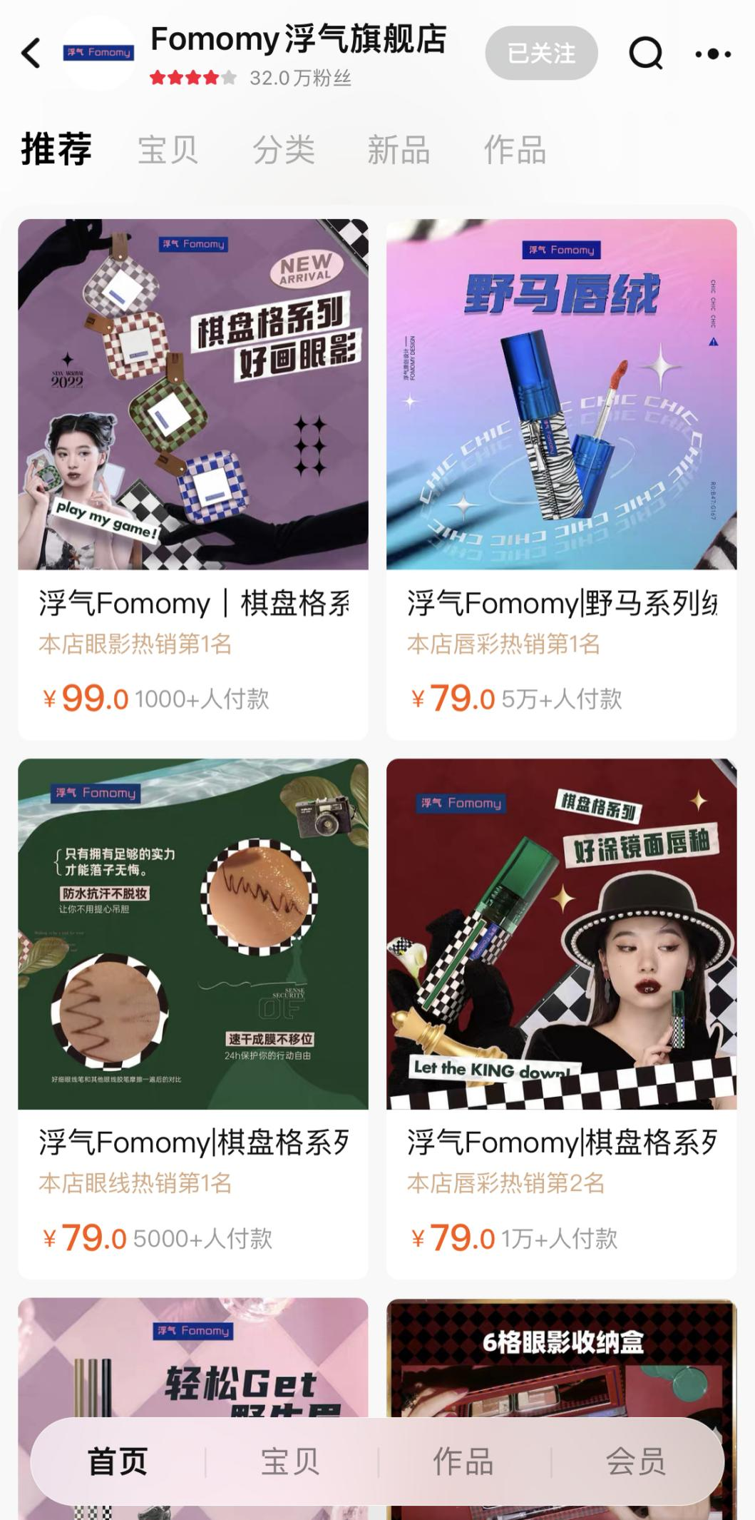 青眼注意到,目前浮气Fomomy天猫官方旗舰店拥有粉丝32万,仅剩包括唇釉、眉笔、粉扑在内的9款产品在售,价格在29元-99元之间,其中销量最高的野马系列唇釉售价为79元,付款人数超5万人。其抖音旗舰店则拥有3.6万粉丝,销量为3.3万件。